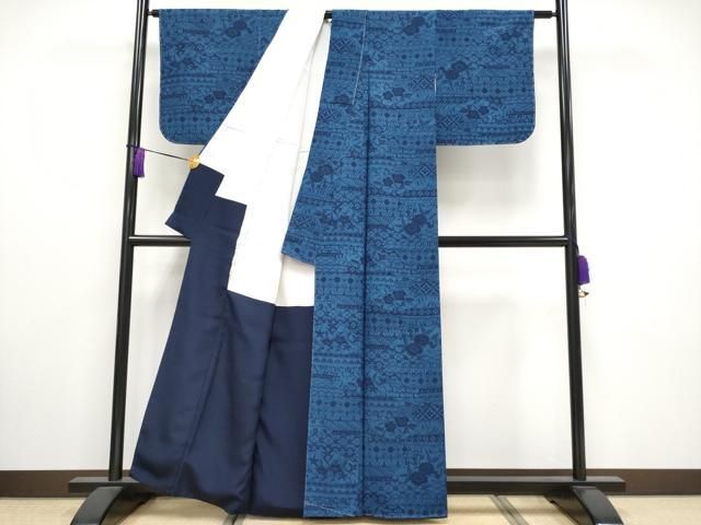 平和屋着物 上 藍造り国選定無形文化財 藍師 佐藤昭人 小紋 地紙草花文 反端付き s 5