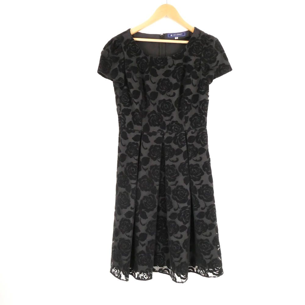 M S GRACY エムズグレイシー KN-421505 ワンピース 38 ポリエステル他 ひざ下丈 半袖 薔薇 レディース