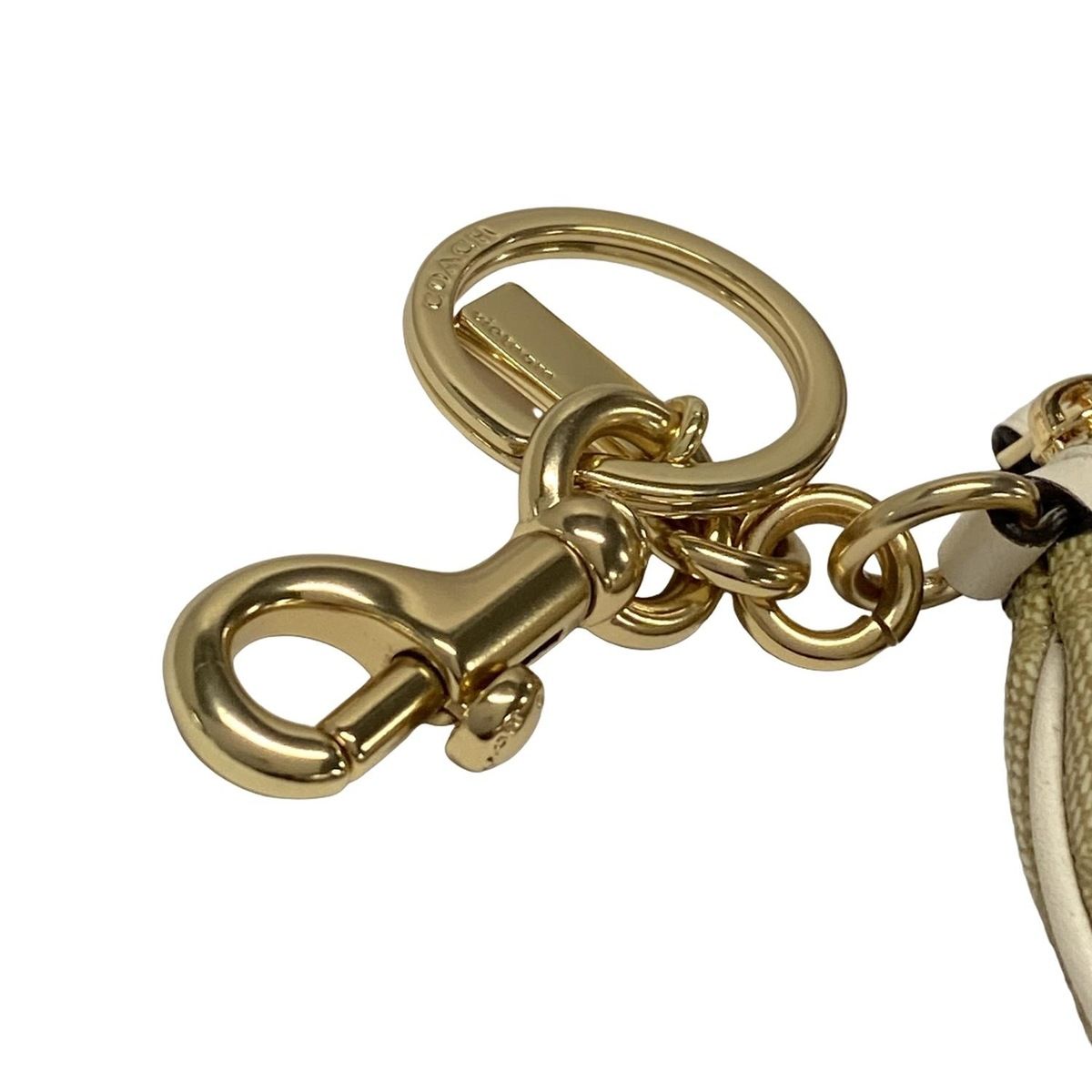 COACH コーチ コインケース シグネチャー柄 CG 762 ベージュ×ライトブラウン キーリング付き