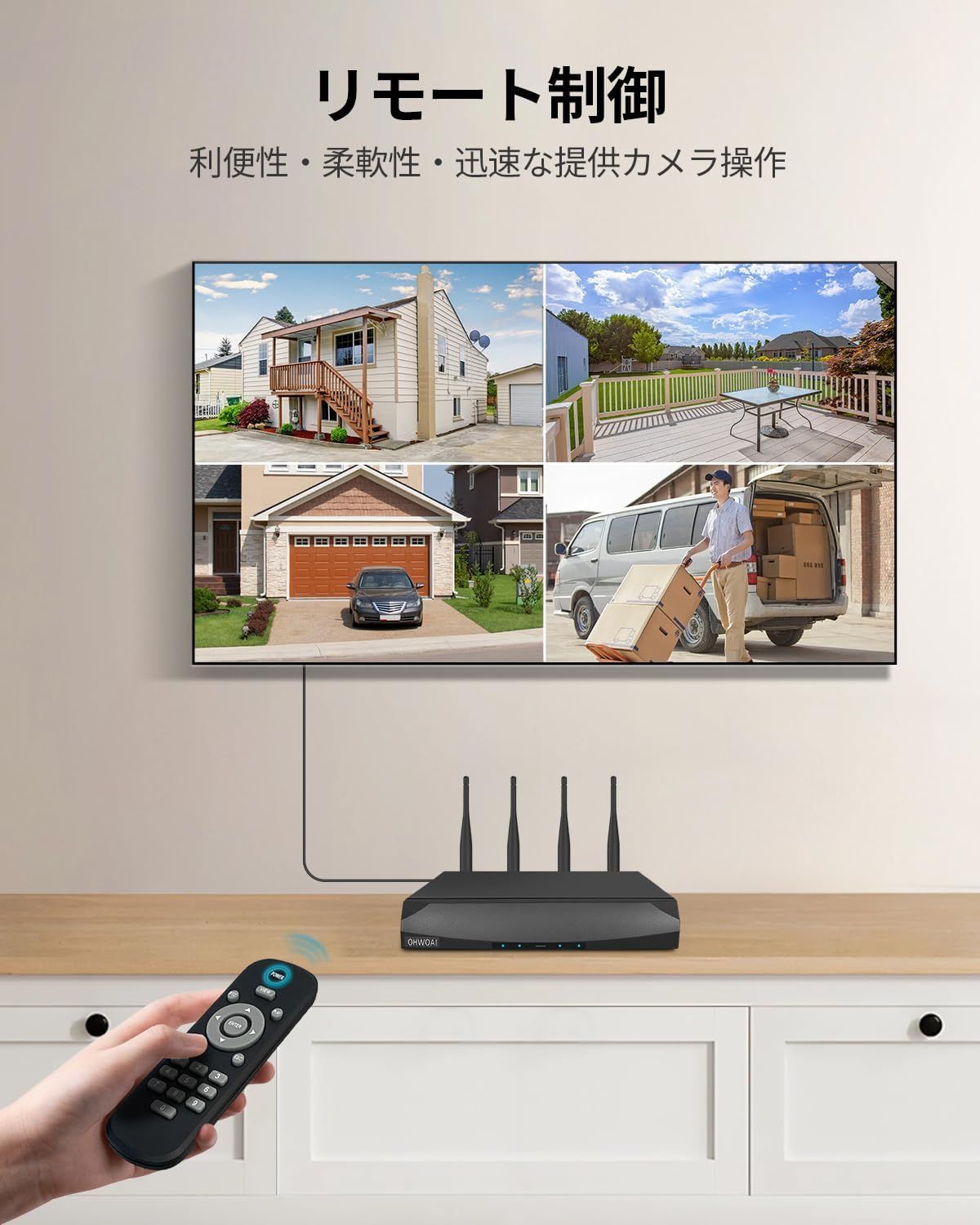 録画機には4本アンテナを装備し、広範囲かつ安定した通信環境を実現します。面倒な配線不要、初心者にも簡単設置!