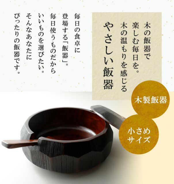 木製漆器は、余分な水分を逃がし、必要な水分を保つから、いたみにくくで美味しい!また、めしびつ自体が木のにおいがするため、ごはんもいい香りがします。最新の電化製品では味わえない、木製漆器ならではあたたかさとぬくもりを感じてください。