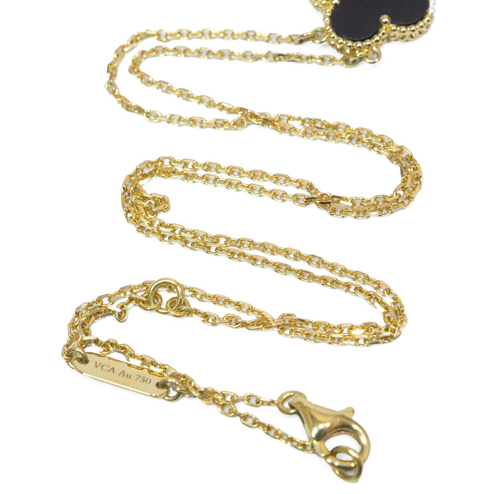 Van Cleef - Arpels ヴァン クリーフ-アーペル ヴィンテージ アルハンブラ K 18 YG オニキス ネックレス 約5.1 g位 18金 イエローゴールド ペンダント ジュエリー ブランド