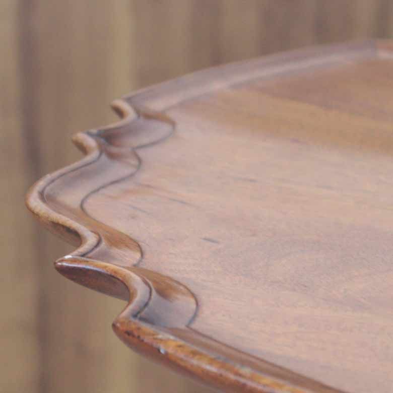 ティルトトップテーブルは、特に18世紀のイギリスで発展した、機能性と装飾美を兼ね備えたアンティーク家具です(本製品は80年ほど前の製品となります)