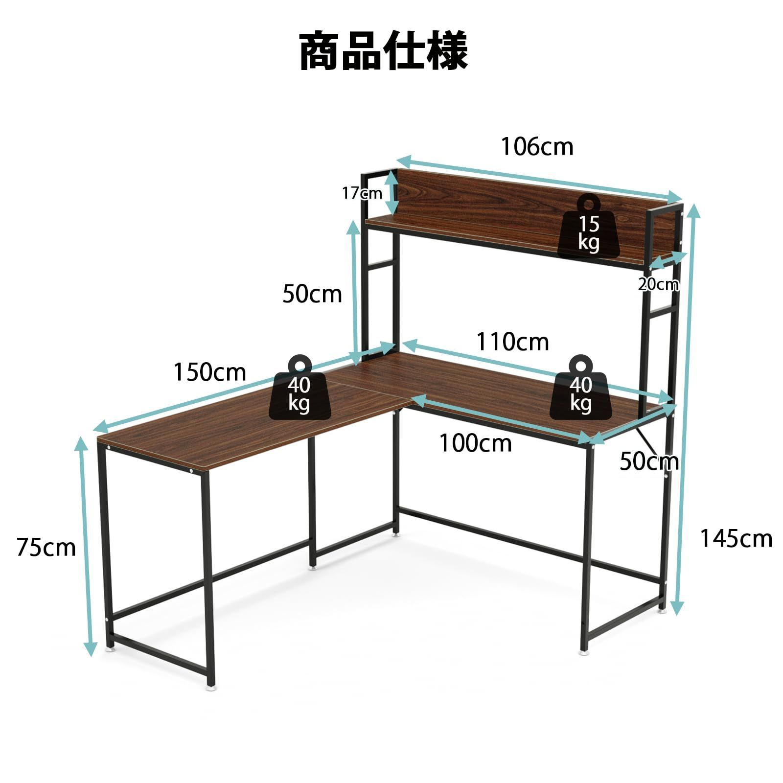 収納ラック付き 机 l字デスク pcデスク パソコンデスク 幅150 cm ラック付きデスク 左右入替 ワークデスク テレワーク用 コーナーデスク L字型 ゲーミングデスク DEWEL モニターアーム対応 勉強机 学習机 オフィスデスク 木製 メ