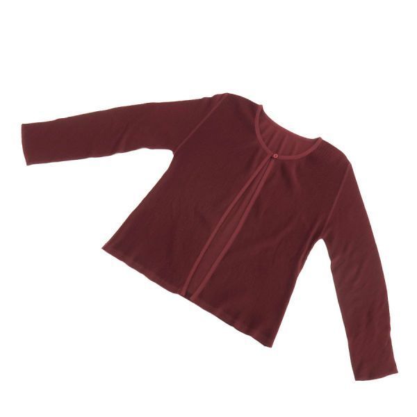 ■コメントイッセイ・ミヤケよりワインレッドカラーのカーディガンが入荷いたしました。右袖にうっすらとシミ汚れがありますが、よく見ないとわからなく着用時には大きく目立たないので、Aランクに近いBランクでのご紹介です。お気軽にお問い合わせくださいませ。