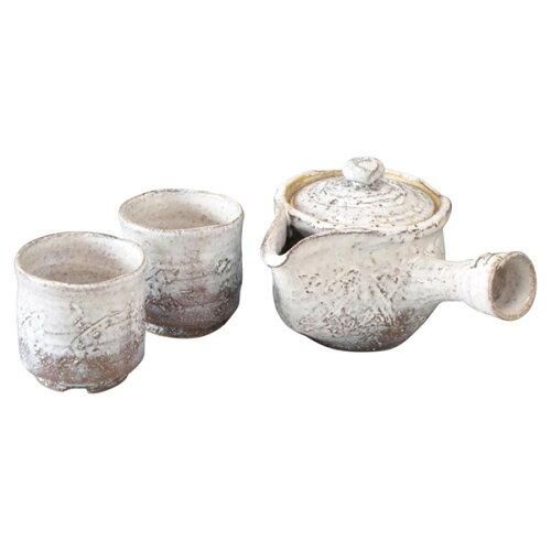 陶器 急須(11×11×11cm・350ml)×1、湯呑(径7.5×7.5cm)×2 約1.5kg 釉薬の縮れを景色にした荒々しさの中に、どこか土ものらしい柔らかさを兼ね備えた味わい深い茶器揃です。 手づくり品のため、色・柄・サイズ等が多少異なる場合がございます。