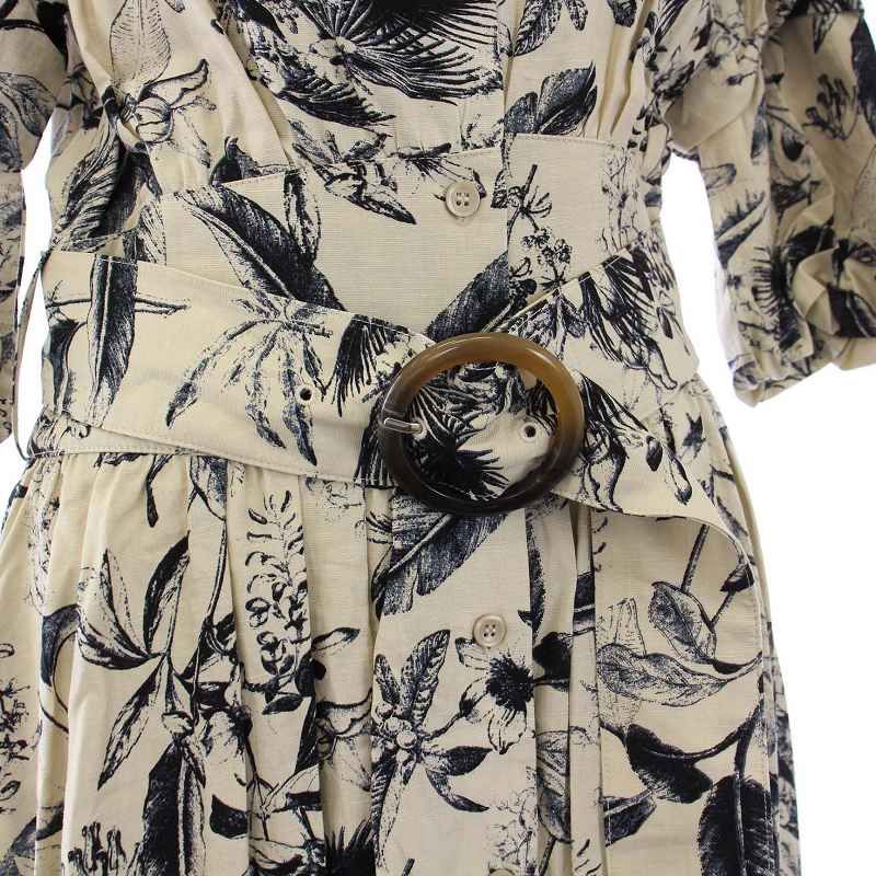 コエル COEL ベルト付きボタニカルワンピース ロング 五分袖 38 M 紺 ネイビー ベージュ KH GY 36