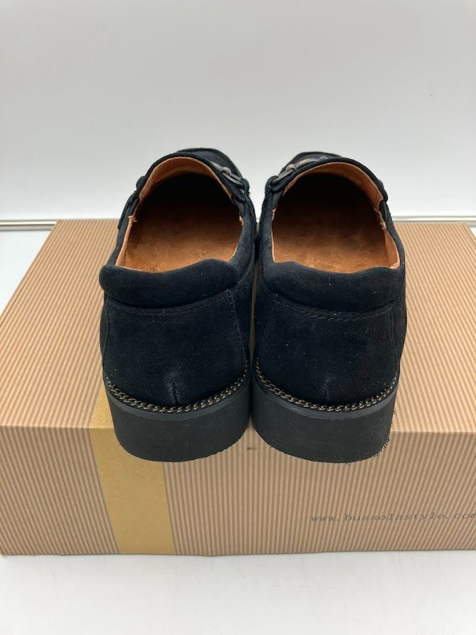 BUSSOLA ローファー 撥水レザー ブラックスウェード ビットローファー