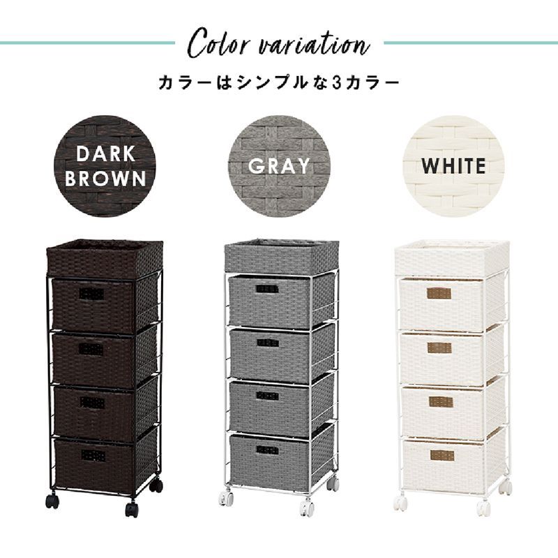 ラタン調 サニタリーラック ダークブラウン 4段 幅40.5 cm 高さ109.5 引き出し4杯 ランドリーラック サニタリー 隙間収納 脱衣所収納 タオル収納 チェスト 網 網目 完成品 防水 通気性 おしゃれ 新生活