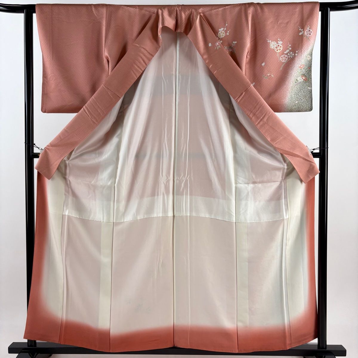 付下げ 身丈159 cm 裄丈60.5 S 袷 枝花 枝梅 金糸 金銀彩 ピンク 正絹 秀品