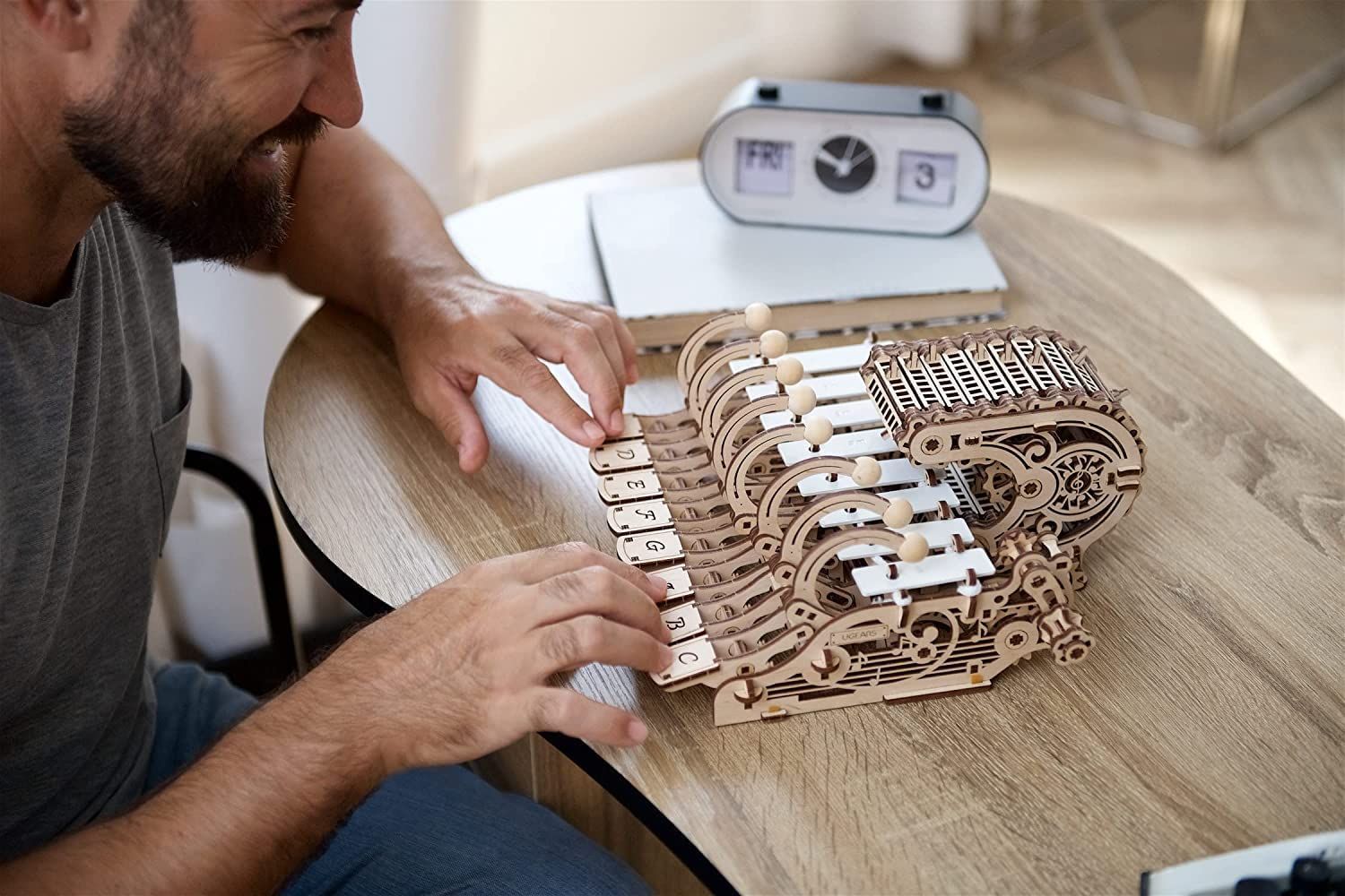 ド・レ・ミ・ファ・ソ・ラ・シ・ド♪UgearsのDIY楽器「メカニカルチェレスタ」をご紹介します!この特別な楽器モデルはピアノやオルゴール、木琴の要素が含まれており、ピアノのシンプルバージョンと言えます。とても使いやすく設計されているため、小さなお子様や音楽の知識がない方でも鍵盤を叩いたり、クランクを回して設定したメロディーを奏でることで音楽に触れることができます。