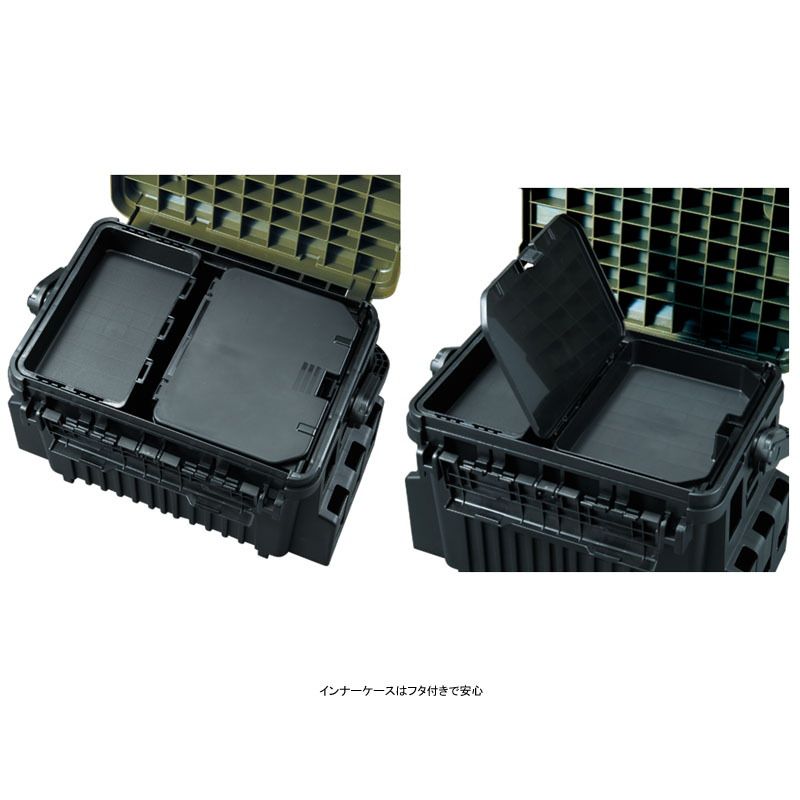 ●リフトアップシステム採用。下段に収納しているタックルを取り出す際に中皿をボックスの外へ退ける煩わしさを解消!リフトアップシステム搭載のインナーケースを持ち上げることで下段のタックルへのアクセス性がアップ!