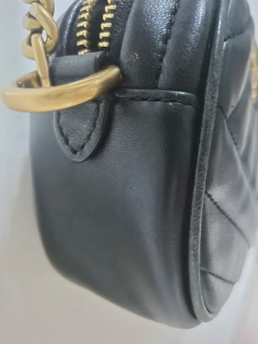 ブラックカラーは金のロゴとチェーンで引き立てられています。クロスボディバッグとしても着やすいです。