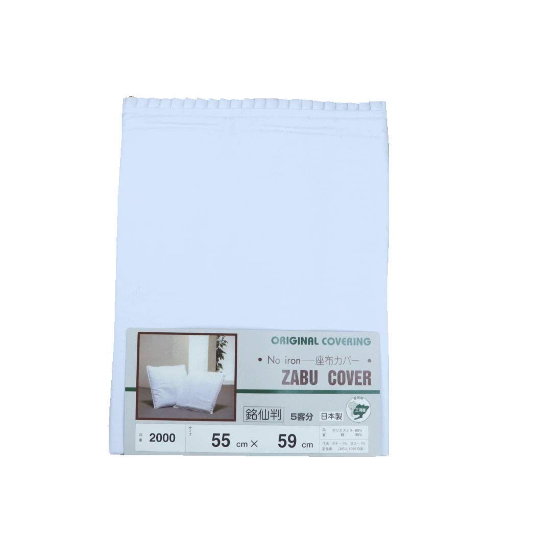 【 日本製 】 座布団カバー 5枚組 【 白 フリル付 】【 186本打ち込み生地 】【 ノーアイロン 】 ざぶとん カバー 三河産 業務用 飲食店 業務用 公民館 集会所 来客用 法事 会議室 (銘仙判 55cm×59cm)