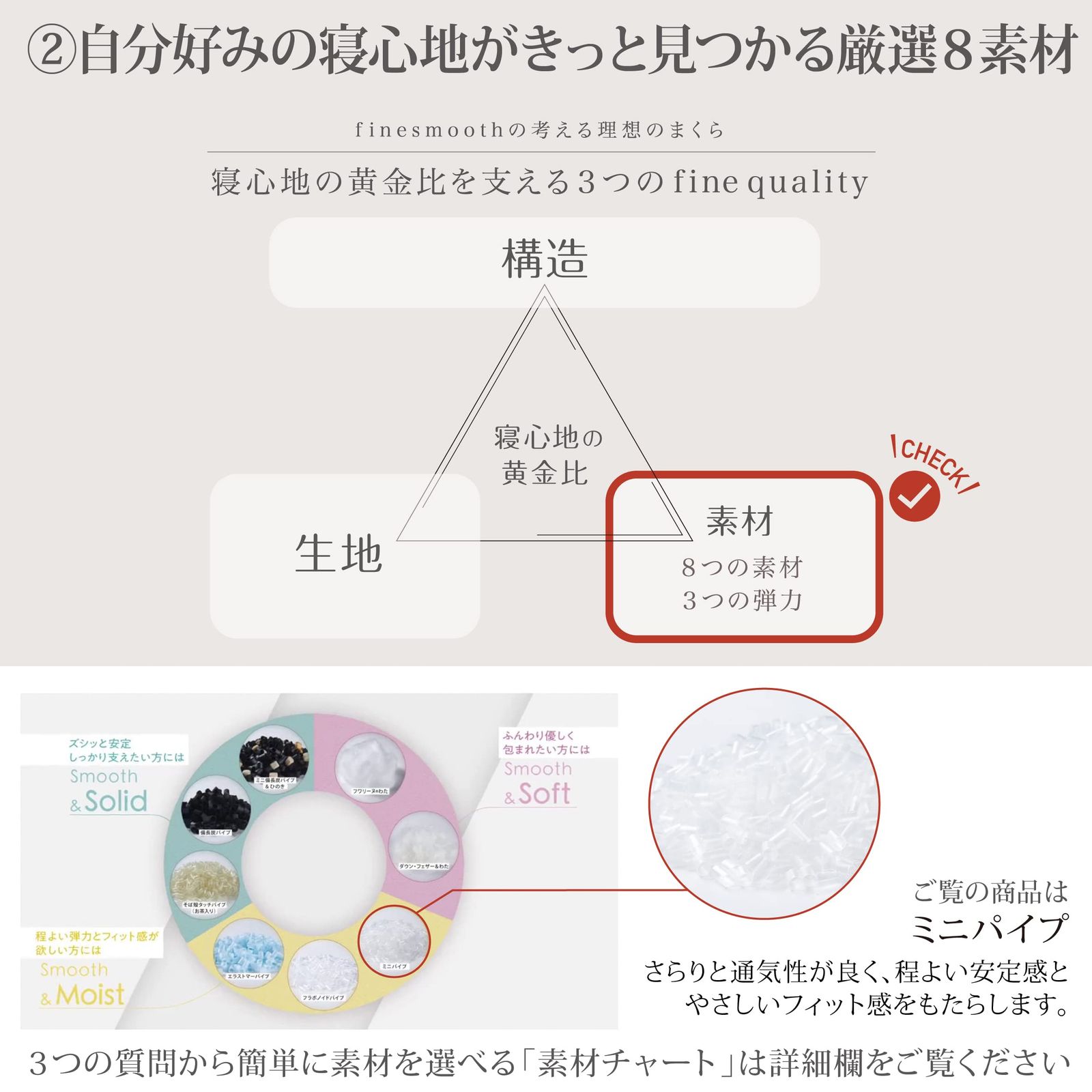 通気性に優れ、流動性の高いミニパイプ。頭部へのフィット感が特徴です。
