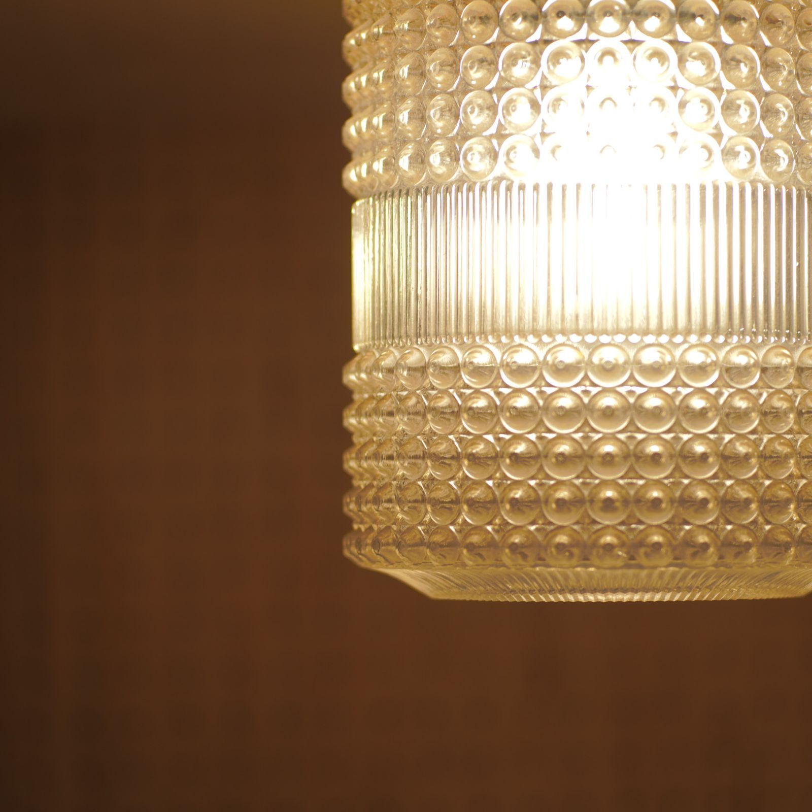 一見はガラスですが、樹脂製のシェードです。ガラスよりも凹凸がくっきりとしたデザインは、古き良き昭和時代を感じる灯りです。LED電球より白熱球が似合いそうな雰囲気。