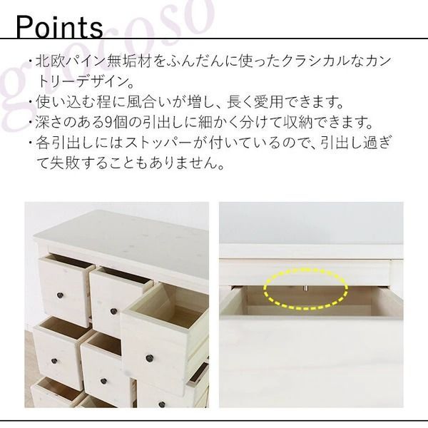05.深さのある引出しが9個あり、細かく分けて収納することができます。