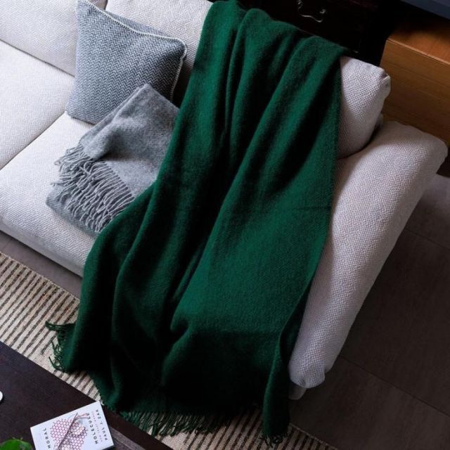 ボトルグリーンは、シックで落ち着いた冬の暮らしを演出します。北欧の深い森を連想させ色味が、心を落ち着かせ、リラックス効果をもたらします。ブランケットに微妙な色むらがあり、単調にならないのも人気の秘密。若い方からシニアまで、どんな年齢の方にも違和感なくお使いいただけます。
