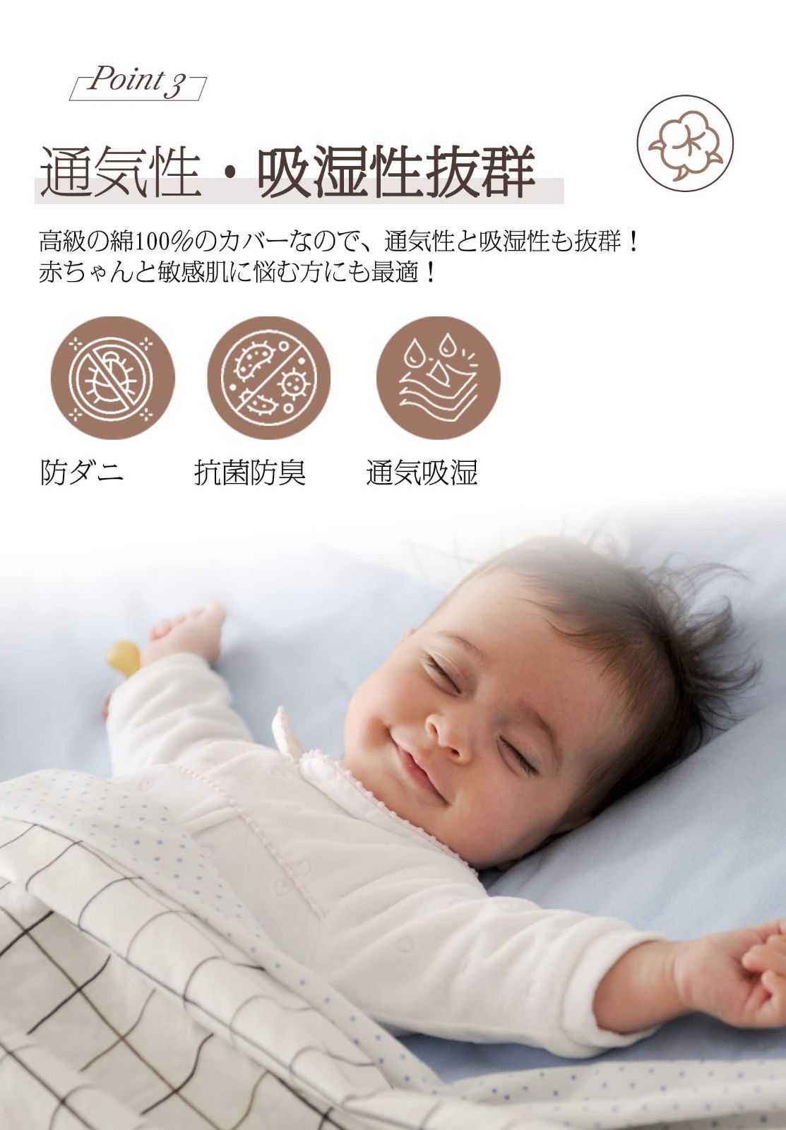 お手入れに便利洗濯機や手で丸洗いも可能で、乾きやすく、お手入れは楽々です。また、防ダニで、汚れも取りやすく、清潔な睡眠環境を保ってくれます。さらに、丈夫で、摩耗に強く、長持ちしてご利用いただけます。