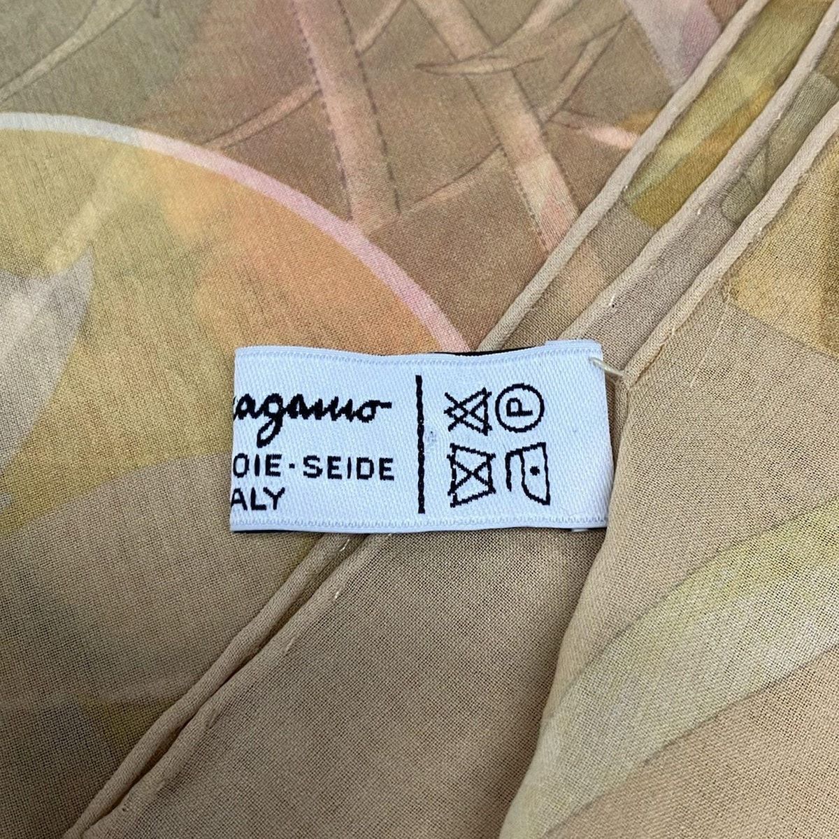 サルバトーレフェラガモ ストール ショール - ダークイエロー×オレンジ×マルチ キリン バタフライ 蝶 花柄 ヒョウ シルク