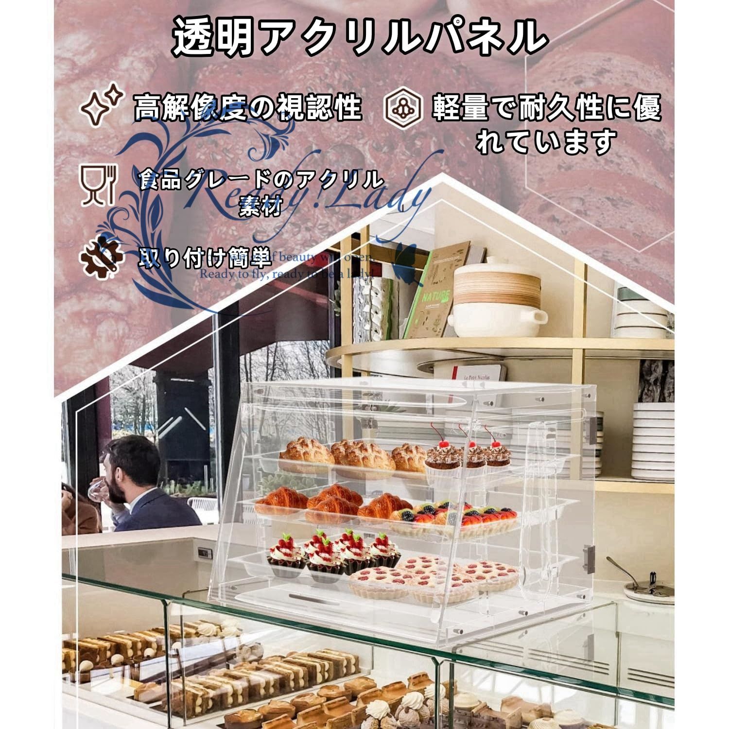 ペストリーディスプレイケース 3段 業務用カウンタートップベーカリーディスプレイケース ィーケーキキャビネットデザート防塵キャビネット 軽量で耐久性があり 取り付けが簡単です 家庭用 パン屋 業務用 3層