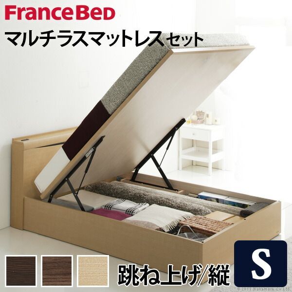 フランスベッド ライト 棚付きベッド 〔グラディス〕 跳ね上げ縦開き シングル マルチラススーパースプリングマットレスセット ベッド 木製 棚 国産 収納 跳ね上げ式 縦開き コンセント マットレス付き 高密度連続スプリング 防ダニ 抗菌 防臭 寝具