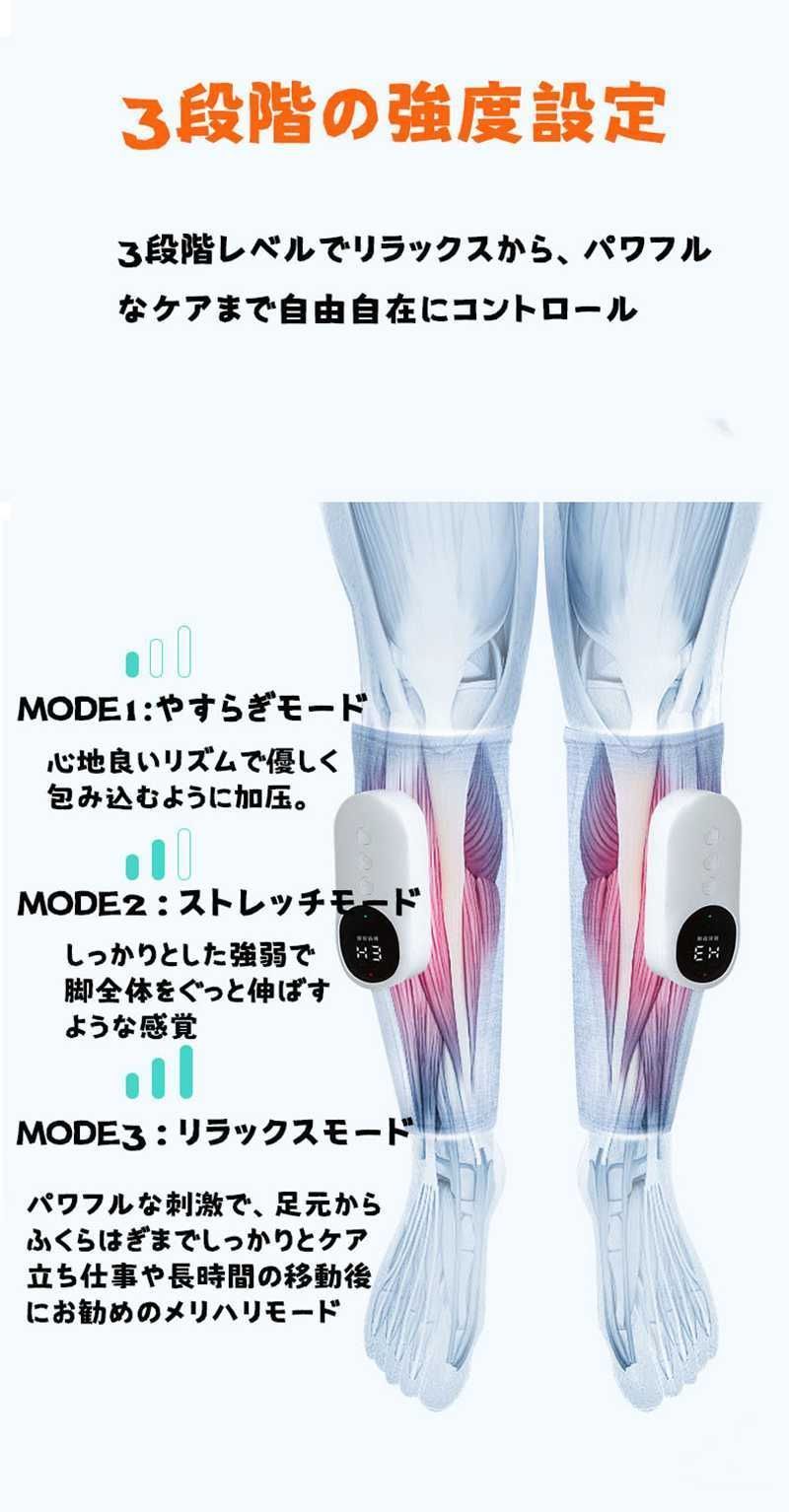 ふくらはぎケア 振動 空気圧 温熱 ふくらはぎリッラクス 太もも 足ケア コードレスUSB充電式 3モード 3段階強度 3段階温度 足 マッサージ器 男女兼用 フットケア 脚 美脚 むくみケア 強力 yahuxz 04