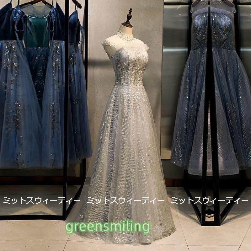 カラードレス ロングドレス 演奏会 Aライン 発表会 パーティドレス チュール 二次会 舞台衣装 ステージドレス グレー/シルバー ラメ スパンWP数量限定価格926