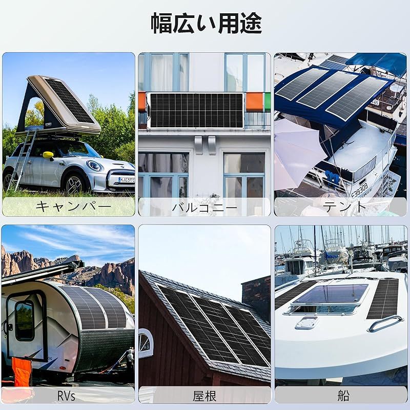 フレキシブルソーラーパネル 100 W 太陽光パネル 単結晶 超薄型 超軽量 250°曲げる RV 車中泊 屋根 ベランダ 船 ボート キャンピングカー 地震停電 防災予備品 非常用 ソーラーパネル 黒