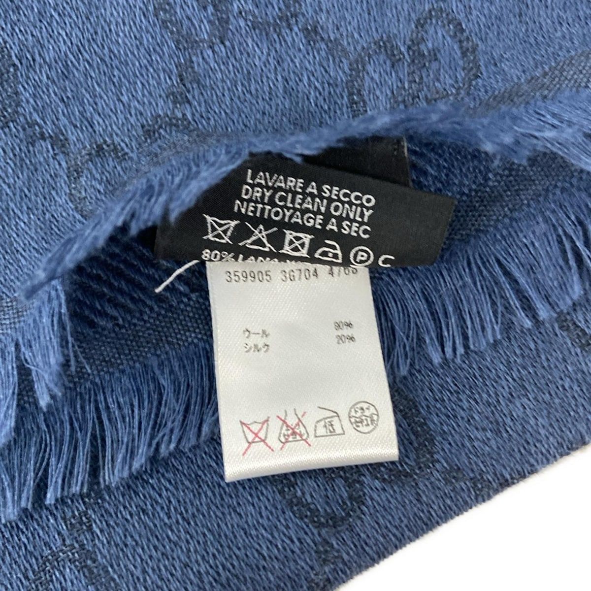 GUCCI グッチ ストール ショール - 359905 ネイビー×ダークネイビー GG柄 ウール シルク