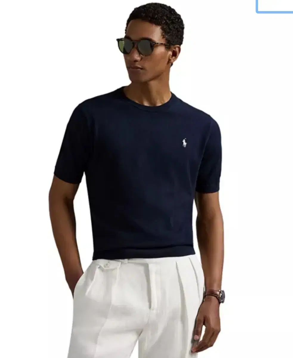 新品ポロクルーネック半袖セーター L ネイビー