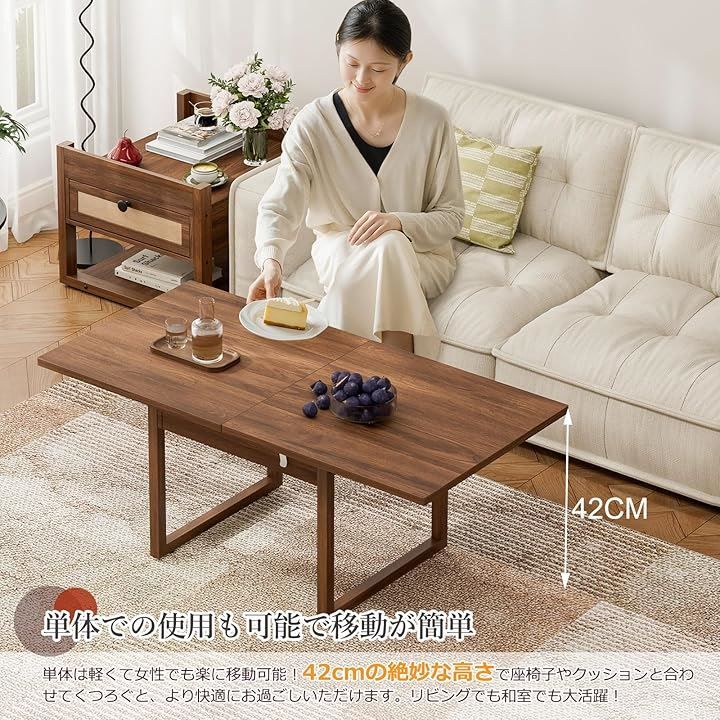 IKIFLY ローテーブル コーヒーテーブル 木製 自由 リビングテーブル 高さ調整 ホンムオフィス ダイニングテーブル 折りたたみ リビングルームとオフィス用 ブラウン 50奥行き x 100幅 43高さ cm