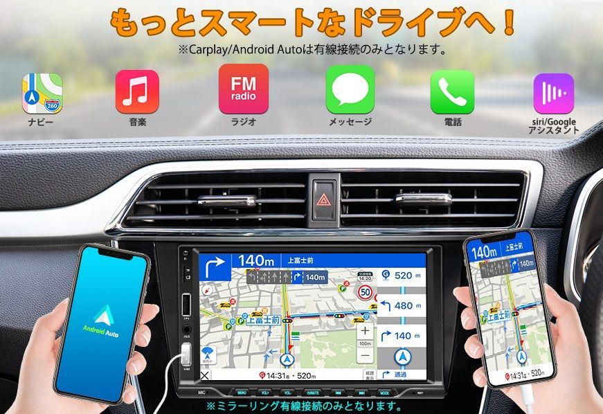 ※本機は有線CarPlay対応しています。