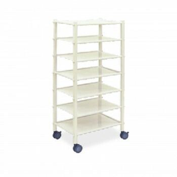 7段式で様々な用途に対して多目的に活用できる頑丈な業務用ワゴンです。直径7.5cmの双輪キャスター付き。便利な対角ストッパー式を採用しています。