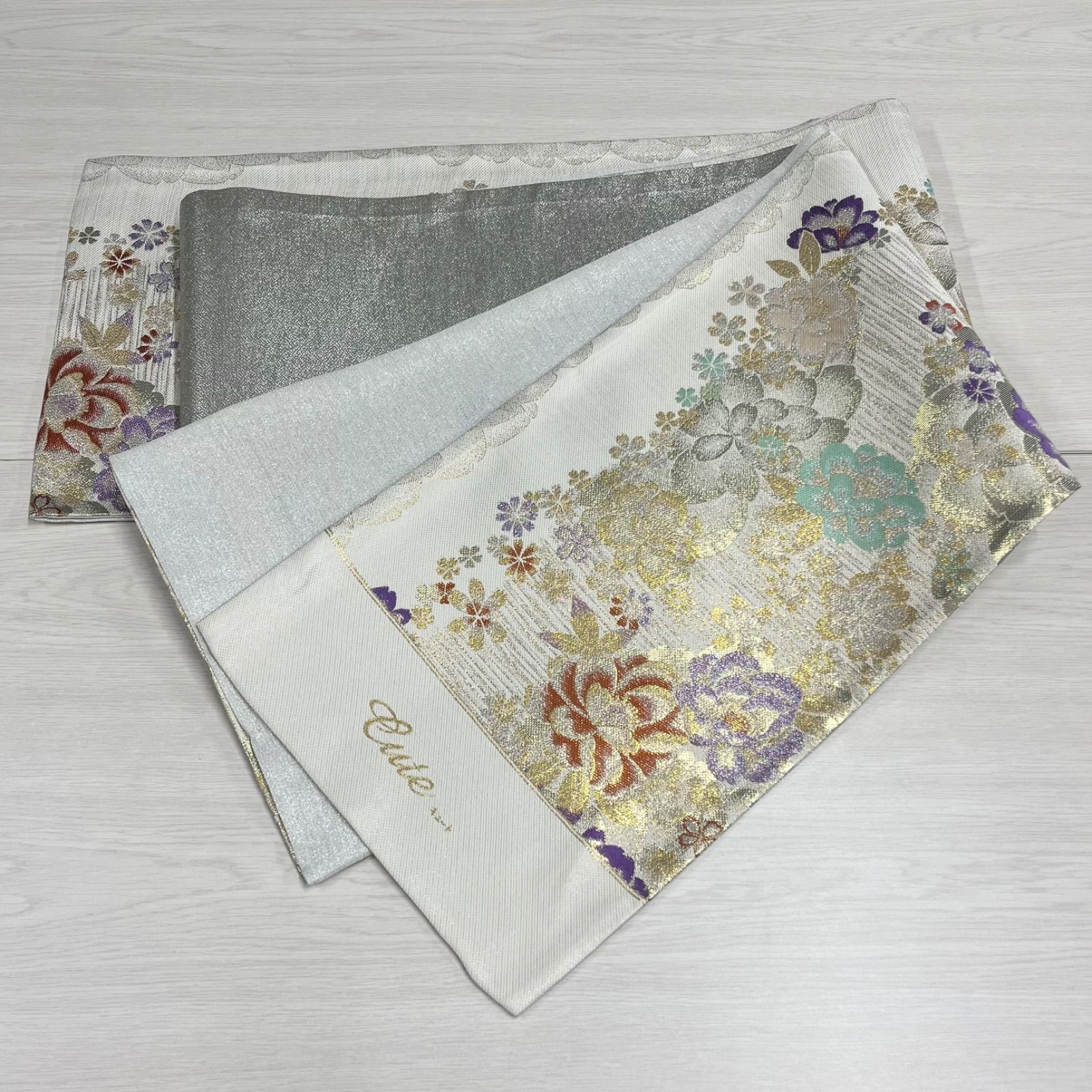 未仕立て 酒井守 西陣織 袋帯 金 銀 白 花柄 振袖 成人式 結婚式 1