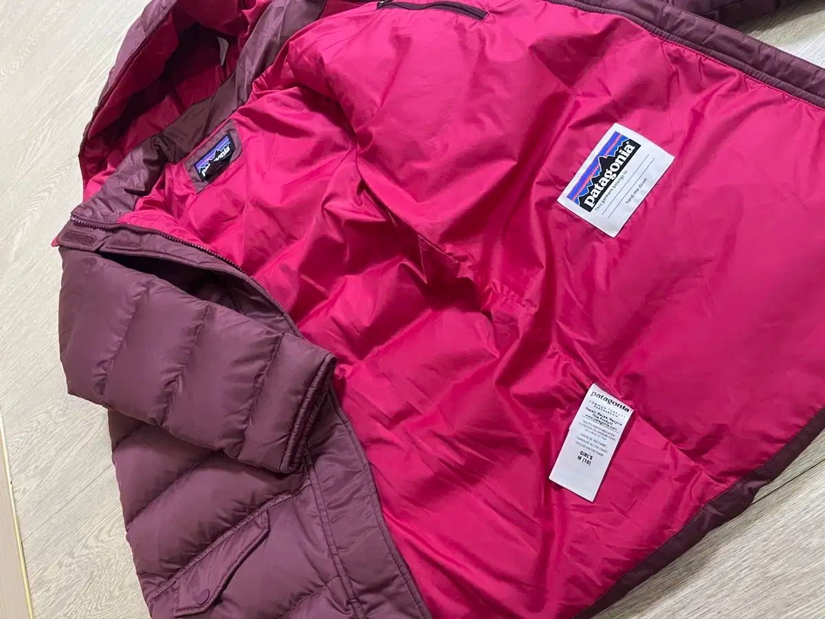 パタゴニア キッズ ダウン M(10)サイズです。 カラーはJAJU色で、裏地は濃いピンク色です。 傷は、