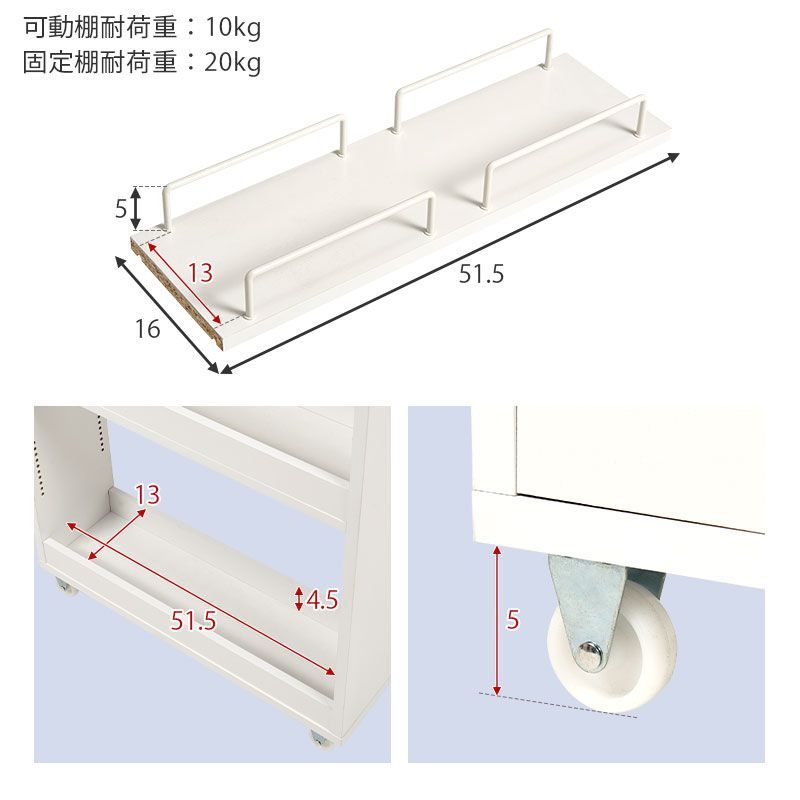 冷蔵庫の横や家具の間など、デッドスペースを活用したいキッチン・洗面所・ランドリーにおすすめです。