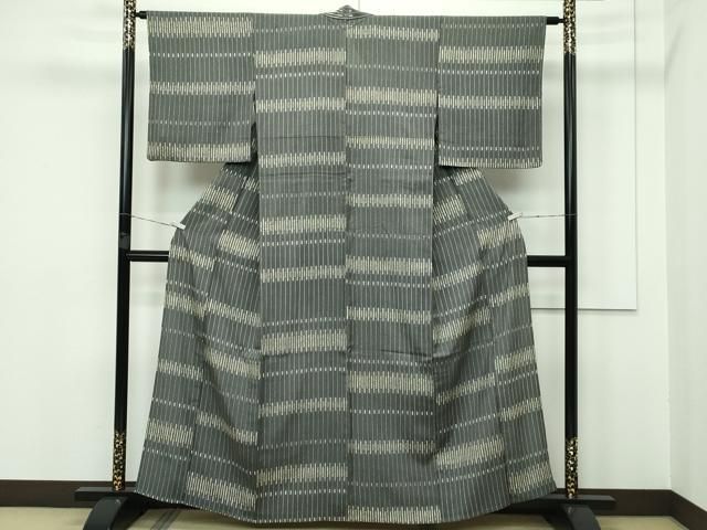 平和屋着物 上 紬 単衣 間道 藍媚茶色地 s 5