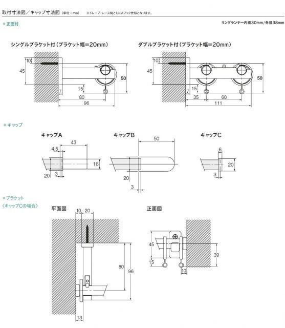 ●ポール~1.20m=1.20m1本 ~2.10m=2.10m1本 ~3.10m=1.55m2本●キャップ2コ●リングランナー~1.20m=10コ ~2.10m=20コ ~3.10m=30コ ●エンドリングランナー1組●シングルブラケット ~1.20m=2コ ~2.10m=3コ ~3.10m=3コ●取付ネジ 〈3.10mのみ〉●ジョイント1コ