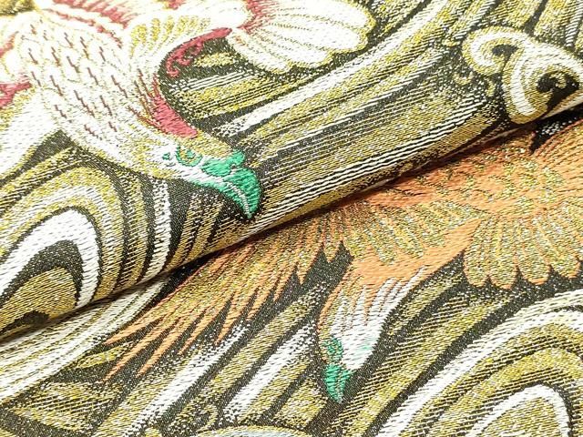 平和屋着物 九寸名古屋帯 唐織 立波文 鷹 黒地 金銀糸 正絹 ob