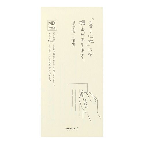 詳細情報「MD用紙」を使用した一筆箋です。MD便箋と同様に余白を活かしたレイアウトで、縦横自由にお使いいただけます。たっぷり書ける50枚。