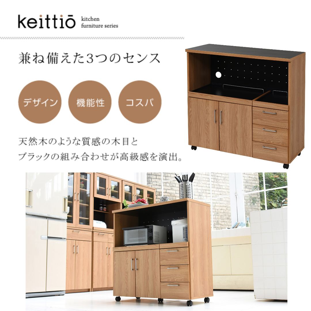 キッチンカウンター キッチンボード 90 幅 コンセント付き レンジ台 キッチン収納 食器棚 カウンター 引き出し 付き キャスター付き