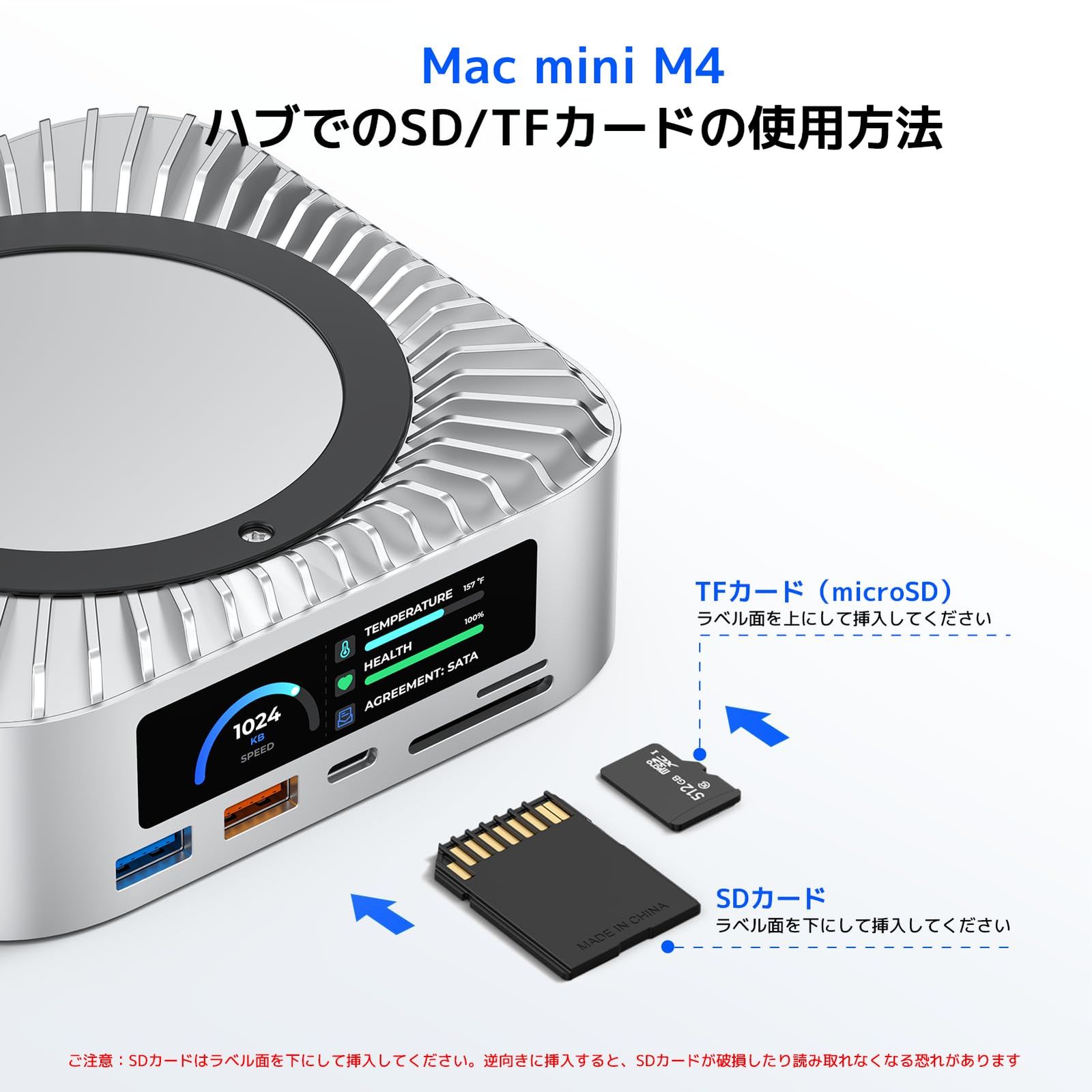 新モデル Mac Mini M 4 対応ハブ 高精細UI RayCue USB Cハブ 10 in 1 NVMe SSD拡張機能搭載 HDMI K 60 Hz Cデータポート Micro SDカードスロット A 5 Gbps