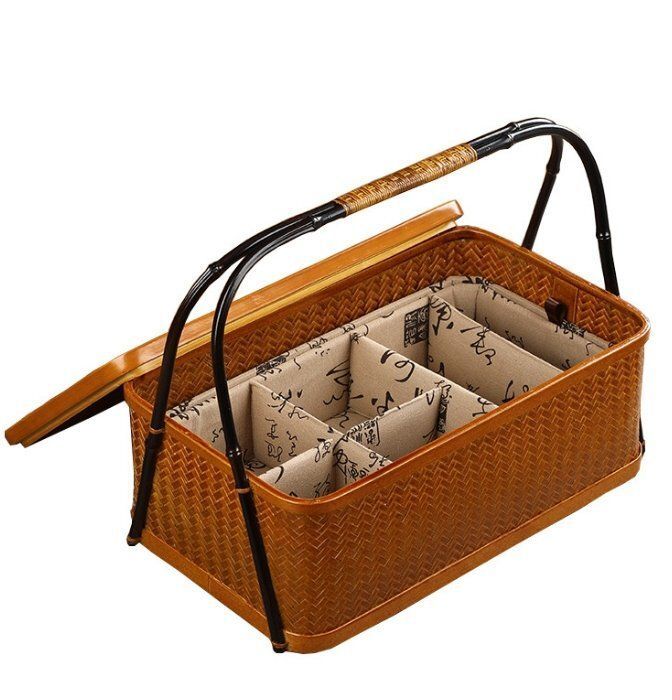 復古長方形家庭用カバー付き防塵収納ケース便携茶具収納ケース