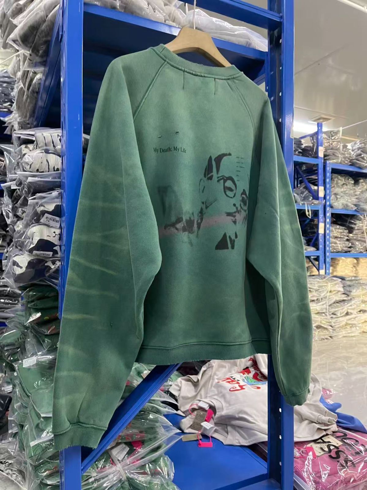 h 美式ヴィンテージ 洗い加工 クルーネックスウェット ユニセックス ゆったり オーバーサイズ ストリート 古着風 トレーナー MY LIFE プリント