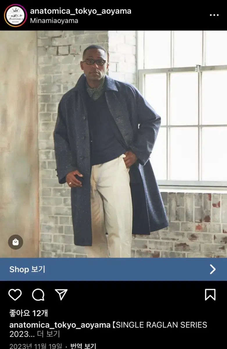 アナトミカ シングル ラグラン 2 コート 23 Fw 黒 48