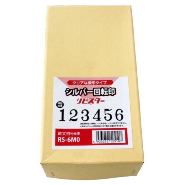 回転印 数字 番号用 初号 明朝体 6連 スタンプ 12.8 mm×61.8 mm 回転ゴム印 6連回転印 リピスター RS-6 M 0