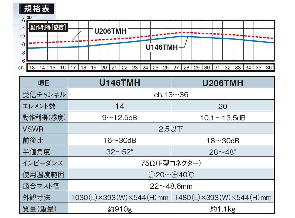 マスプロ電工 型UHFアンテナ 20素子 受信チャンネルch 13 36用 U 206 TMH