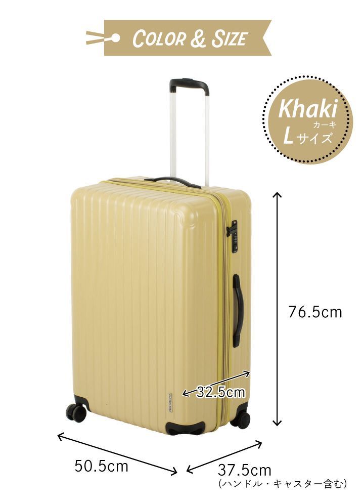 ・ キャプテンスタッグ スーツケース TSAロックWFタイプ L UV-0088 カーキ キャリーケース キャリーバッグ 軽量 Lサイズ ロック付き 旅行 ビジネス 出張 持ち手調節 ダブルファスナーフック付き仕切りボード バッグ 鞄