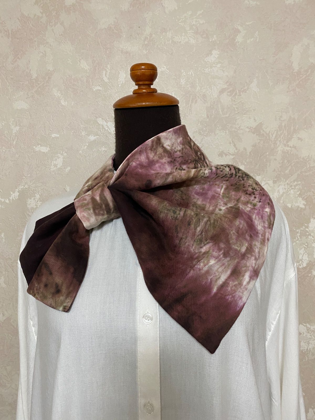 二重ガーゼをぶっかけ染めにしてカーディガン、パンツ、スカーフを作りました。
